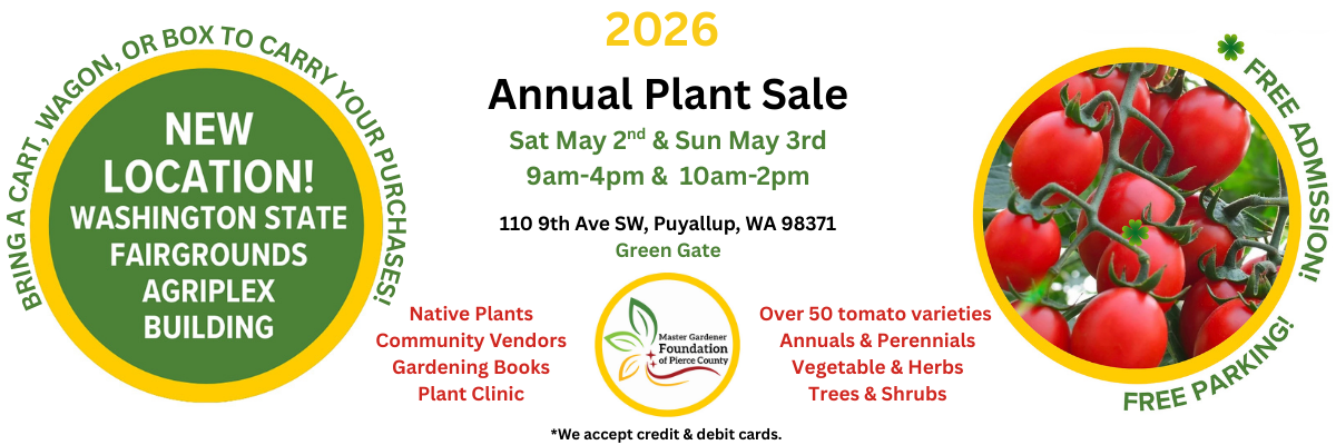 Here’s how to participate: Go to Fred Meyer Community Rewards. You will receive instructions on how to sign on to your shopping card and to search for ‘Master Gardener Foundation of Pierce County’ to link to your card. That’s it. From that point forward, a percentage of your purchases will be credited to our program. Thank you.